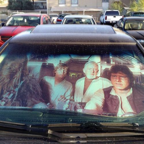 Time to add some fun to world and galaxy, at least a little smile. Star Wars Car Sun Reflector will make everyone smile when they see your car parking. Amazing design looks like all the favourite Star Wars characters are sitting inside of your car. If you are looking for a cute and geek style sunshade, here it is.